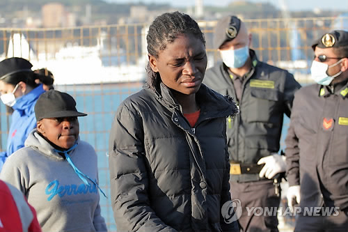 | △ 지중해의 비극 (시칠리아 AP=연합뉴스) 리비아를 떠나 이탈리아로 가던 난민 약 400명이 지중해 해상에서 전복사고로 익사했다고 국제아동구호단체 세이브더칠드런과 국제이주기구(IOM) 등이 14일(현지시간) 밝혔다. 생존자들은 난민 550명 정도가 타고 있던 선박이 지난 12일 지중해에서 뒤집혀 144명만 이탈리아 해안경비대에 의해 구조됐다고 전했다. 사진은 한 생존 난민이 13일 시칠리아의 포르토 엠페도클레 항에 침통한 표정으로 도착하고 있는 모습. marshal@yna.co.kr Migrants arrive at the Sicilian Porto Empedocle harbor, Italy, Monday, April 13, 2015. Italy's Coast Guard helped save 144 migrants Monday from a capsized boat in the waters off Libya and spotted nine bodies. It was the most dramatic of numerous rescue operations that brought thousands to safety in recent days, as good weather has encouraged the desperate to set out on smugglers' vessels. The overturned boat was spotted 80 miles north of Libya, Coast Guard Cmdr. Filippo Marini told The Associated Press in a telephone interview. (AP Photo/Calogero Montanalampo) |