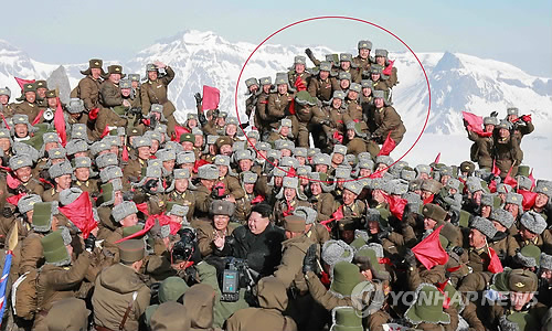 북한 김정은과 전투비행사 백두산 기념사진 조작 의혹