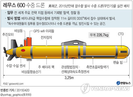 온라인 군사전문 매체 밀리터리닷컴과 외교·안보 전문매체 더디플로맷 등 미 언론은 19일(현지시간) 조셉 토팔로 국방부 수중전 담당 국장(해군 소장)의 말을 빌려 미 해군이 올 연말까지 버지니아급 공격 핵잠수함을 발진기지로 하는 레무스 600 수중 드론(UUV)을 실전 배치해 전 세계 주요 전략 지점 등에서 기뢰밭 탐색과 정찰 등 임무를 수행할 것이라고 보도했다.