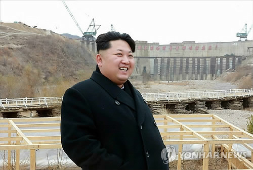 | △ 백두산선군청년발전소 건설장 방문한 김정은 (서울=연합뉴스) 노동신문은 20일 북한 김정은 국방위원회 제1위원장이 백두산선군청년발전소 건설장을 현지지도했다고 전했다. 김 제1위원장이 건설현장을 배경으로 웃고 있다. 2015.4.20 nkphoto@yna.co.kr |