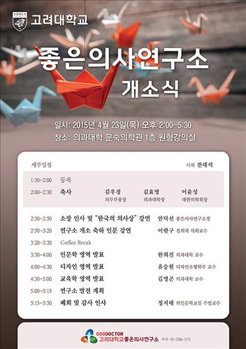 개소식에서는 연구소장을 맡은 고대의대 안덕선 교수(세계의학교육연합회 부회장)가 '한국의 의사상'을 주제로 강연할 예정이다.