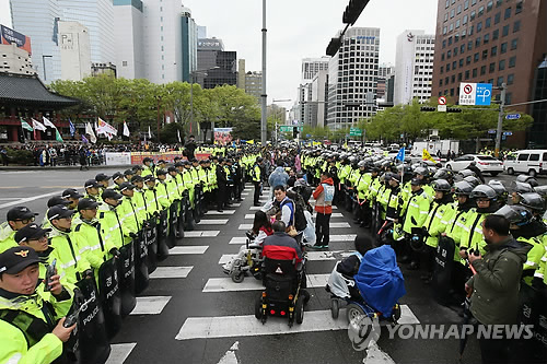 이 과정에서 휠체어를 탄 장애인 20여 명이 보신각 사거리 종로타워와 보신각 사이 왕복 8차로를 일렬로 점거해 일대가 교통 혼잡을 빚기도 했다.