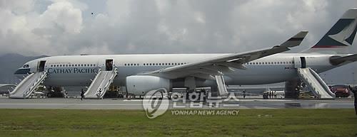 (서울=연합뉴스) 백나리 기자 = 영국 런던 히스로공항에서 비행을 앞둔 캐세이퍼시픽 여객기 조종사가 흉기 소지 혐의로 체포됐다.