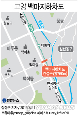| △ <그래픽> 문제의 고양 백마지하차도(연합뉴스 DB) |