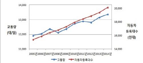 교통량은 유가가 급등했던 2008년과 고유가 상태가 지속된 2012년 감소한 바 있다.