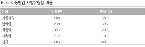 3회 조사 모두에서 방임을 경험했다고 답한 아동은 전체의 10.2%(212명)였고 3회 중 2회 조사에서 방임을 경험했다고 답한 아동은 20.3%(423명)였다.