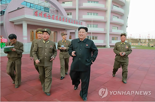 | △ 북한 김정은, 원산 고아원 건설현장 시찰 (서울=연합뉴스) 김정은 북한 국방위원회 제1위원장이 고아원인 원산 육아원과 애육원 건설현장을 방문했다고 노동신문이 22일 전했다. |