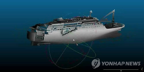 | △ 세월호 참사 1주기를 하루 앞 둔 지난 15일 김우남 국회 농림축산식품해양수산위원회 위원장이 세월호 선체처리 기술검토 태스크포스(T/F)의 시뮬레이션 영상을 공개. (김우남 의원실 제공) |