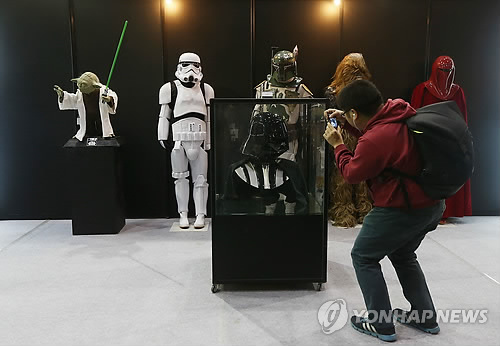 | △ 2015 키덜트 엑스포 (서울=연합뉴스) 이지은 기자 = 26일 오후 서울 양재동 aT센터에서 열린 '2015 키덜트 엑스포'를 찾은 한 관람객이 영화 스타워즈에 등장한 다스베이더 모형을 사진찍고 있다. 2015.3.26 jieunlee@yna.co.kr |