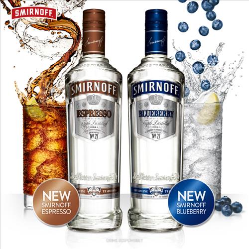 출시된 스미노프 에스프레소와 스미노프 블루베리에는 각각 커피향과 잘 익은 블루베리향이 담겼다.