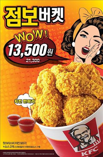 (서울=연합뉴스) 신호경 기자 = KFC(www.kfckorea.com)가 나들이 철을 맞아 23일부터 30일까지 닭 한 마리가 들어 있는 '점보 버켓'을 32% 할인 판매한다.