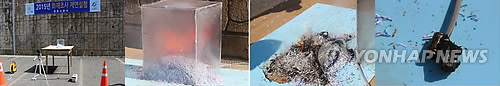 (옥천=연합뉴스) 박병기 기자 = 배터리 안전장치가 없는 값싼 전자담배의 폭발 과정을 보여주는 실험이 이뤄졌다.