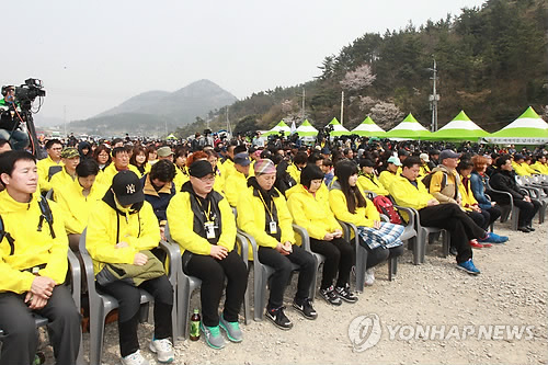 | △ 세월호 참사 발생 1주년을 맞아 진도 팽목항에서 열린 위령제에 참석한 세월호 희생자·실종자 가족들.(연합뉴스 자료사진) |