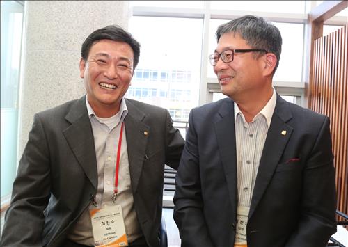 | △ 21일부터 구미시에서 열린 '세계한인대표자대회 및 수출상담회' 참석중인 세계한인무역협회 호찌민지회의 정진수 The Ran 대표(사진 좌측)과 김진섭 ACI 대표는 23일 연합뉴스와의 인터뷰에서 "베트남에서 비즈니스 하려면 눈부신 성장 속도에 늘 대비해야 한다"고 조언했다. |