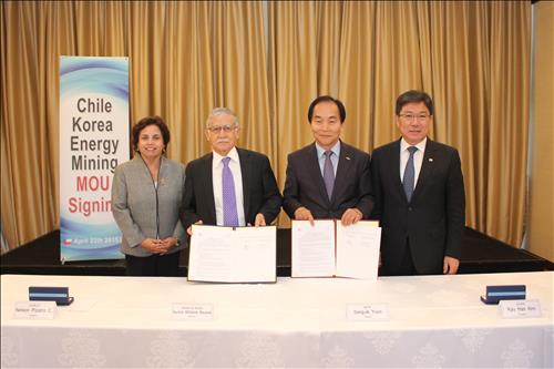 MOU 체결 행사에는 칠레 광업부 아우로라 윌리암스 바우사 장관과 윤상직 산업통상자원부 장관이 참가했다.
