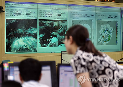 | △ 기상청은 5월1일부터 태풍 정보를 태풍의 사전·사후단계인 열대저압부까지 확장해 서비스한다고 밝혔다. 사진은 서울 동작구 기상청 국가기상센터에서 관계자들이 업무를 보고 있는 모습.(연합뉴스 자료사진) |