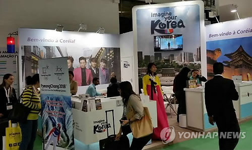 | △ 관광공사, 중남미 관광박람회 참가 (상파울루=연합뉴스) 김재순 특파원 = 한국관광공사 로스앤젤레스(LA) 지사(지사장 김태식)가 22일(현지시간)부터 브라질 상파울루 시에서 열린 월드 트레블 마켓(World Travel Market: WTM) 라틴아메리카 관광박람회에 참가해 한국 관광 홍보에 나섰다. 2015.4.23 fidelis21c@yna.co.kr |
