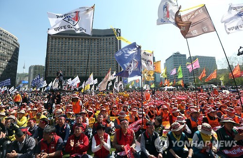 | △ 서울광장에 모인 노동자들 (서울=연합뉴스) 신준희 기자 = 24일 오후 서울광장에서 민주노총 총파업 결의대회가 열리고 있다. |
