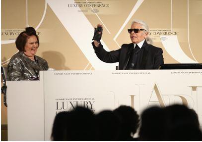 | △ 컨데나스트 콘퍼런스에 참석한 칼 라거펠트(오른쪽) 샤넬 크리에이티브 디렉터와 수지 멘키스의 모습<<서울시 제공>> |