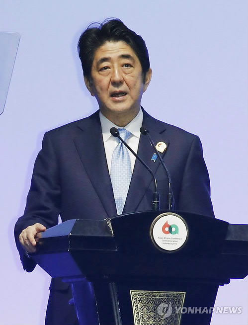 | △ 아베 신조 일본 총리가 사흘 뒤 미국 상·하원 합동연설에서 과거사에 대해 어떤 수준의 언급을 하느냐에 따라 한일관계가 다시 요동칠 것으로 관측된다. 사진은 자카르타에서 열린 반둥회의 60주년 기념 아시아·아프리카 정상회의에서 연설하고 있는 아베 총리. |