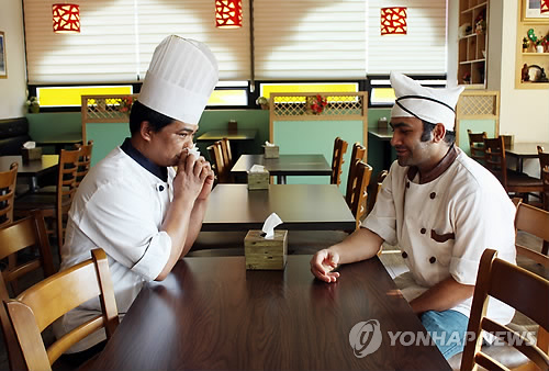 | △ 고국 지진소식에 한숨만 쉬는 네팔인들 (수원=연합뉴스) 강창구 기자 = 26일 오후 경기도 수원시 아주대학교 인근 네팔식당에서 일하는 주방장 람(40·왼쪽)와 조리사 꾸릉(30)씨가 고국 네팔에서 발생한 대지진 소식에 걱정하고 있다. 2015.4.26 kcg33169@yna.co.kr |