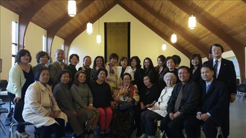 | △ 일본군 위안부 피해자 이용수 할머니(사진 가운데) 가 26일(현지시간) 아베 신조 일본 총리의 미국 첫 도착지인 보스턴을 직접 방문해 아베 총리의 역사 왜곡 및 위안부 강제동원 부정을 규탄했다. 보스턴세계선교회에서 위안부 참상을 증언한 후 기념사진을 촬영했다. 사진제공=곽수연씨. |