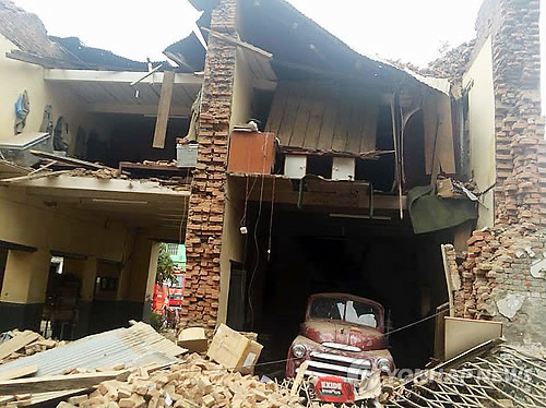 | △ 처참하게 무너진 건물 (서울=연합뉴스) 국제구호단체 기아대책이 네팔 카투만두에서 지진으로 무너진 건물 사진을 27일 공개했다. 2015.4.27 << 기아대책 제공 >> photo@yna.co.kr |