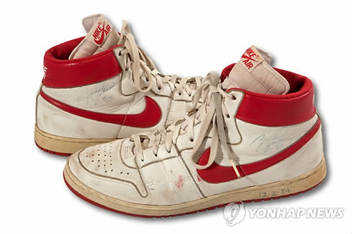 (시카고=연합뉴스) 김 현 통신원 = 미국 프로농구(NBA)계의 전설, 마이클 조던(52)이 데뷔 첫 해에 신었던 농구화가 경매 시장에서 또하나의 고가 기록을 세우며 거래됐다.