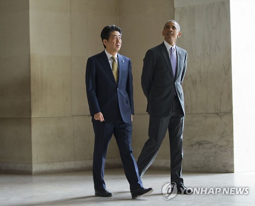| △ 오바마-아베, 링컨 기념관 방문(AP=연합뉴스) |