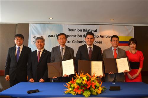 | △ 27일 한국과 콜롬비아 정부 관계자들이 콜롬비아 현지에서 양국간 환경협력 양해각서를 체결했다. |