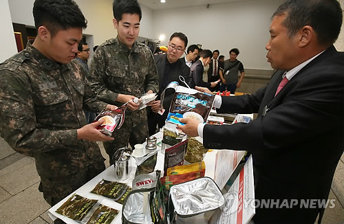 (서울=연합뉴스) 이영재 기자 = 육군은 28일 전쟁기념관에서 민간 아웃도어형 식품 도입을 포함한 '전투식량 혁신'을 위한 공청회를 개최했다.