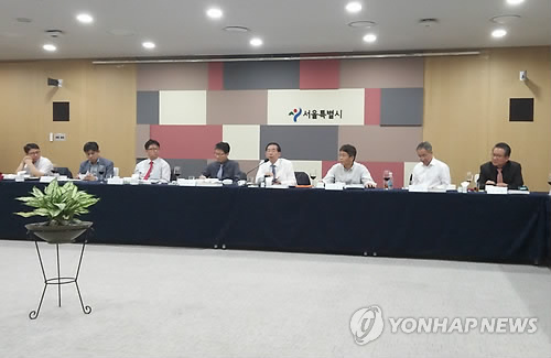 | △ 언론사 경제부장단과 간담회 하는 박원순 시장 (서울=연합뉴스) 박원순 서울시장이 28일 서울시청 신청사에서 언론사 경제부장단과 간담회를 하고 있다. 박 시장은 이날 간담회에서 각종 사고로 영업이 중단된 제2롯데월드 수족관과 영화관에 대해 조만간 재개장을 허가하겠다는 뜻을 밝혔다. |
