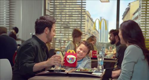 장면은 곧바로 맥도날드 매장으로 바뀌고 밝게 웃는 세 사람의 모습에 "당신의 아이는 의심이 없습니다. 해피밀은 여전히 4유로"라는 이탈리아어 멘트가 겹쳐진다.