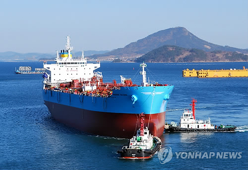| △ 성동조선해양이 건조한 5만t급 정유화학 운반선 (통영=연합뉴스) 성동조선해양이 건조한 덴마크 해운회사 머스크(Maersk)사의 5만t급 정유화학 운반선. 2015.4.30 <<성동조선해양>> pitbull@yna.co.kr |