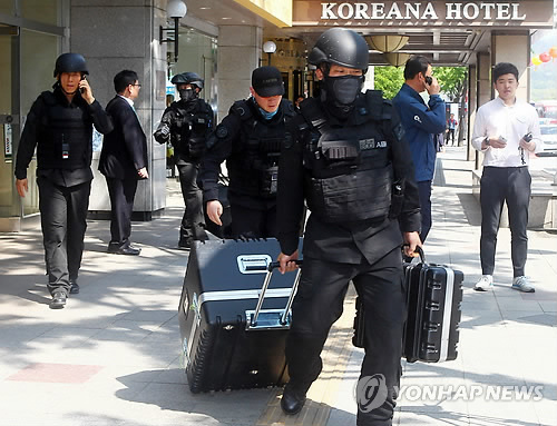 (서울=연합뉴스) 김동규 기자 = 30일 오전 8시 30분께 서울 광화문 코리아나 호텔에 폭발물로 의심되는 물체가 있다는 신고가 들어와 경찰과 군 당국이 긴급 출동해 수색 작업중이다.