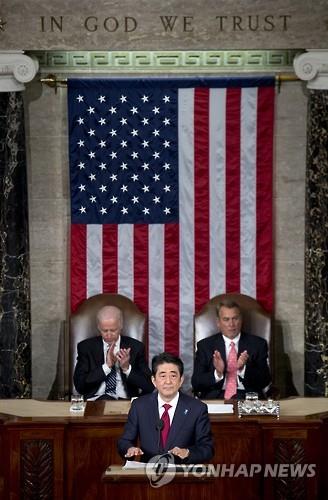 | △ 29일(현지시간) 미 의회에서 연설하는 아베 총리(AP.연합뉴스) |