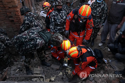 <네팔 지진> '10명 활동' 한국구조대, 대규모 中·日과 대조(종합)