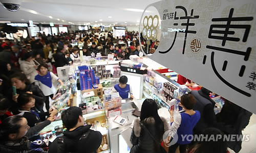 | △ 서울 중구 소공동 롯데면세점이 중국인 관광객들로 발 디딜 틈 없이 붐비고 있다. (연합뉴스 자료사진) |