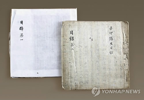 | △ 상주 동학교당 기록 국가지정기록물 지정 (서울=연합뉴스) 국가지정기록물로 지정된 상주 동학교당 기록물. 동학일기(부교주 김낙세 일기). 2013.12.30 << 국가기록원 >> photo@yna.co.kr |