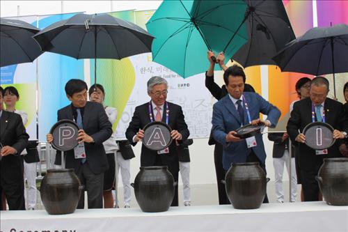 김 장관 등 주요 참석자들은 옹기 뚜껑을 여는 퍼포먼스를 통해 개막을 선포한 뒤 차 감독의 안내에 따라 전시관을 둘러보고 한국관 내 설치된 한식당에서 만찬을 함께 했다.