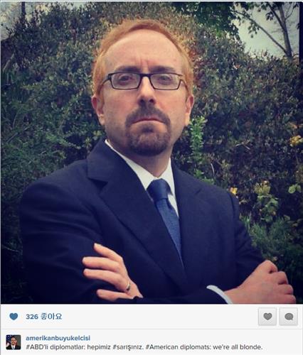 이에 존 바스 주 터키 미국대사가 인스타그램에 다소 붉은 빛이 감도는 금발로 자신의 머리 색깔을 바꾼 디지털 변조 사진을 올리며 "미국의 외교관 : 우리는 모두 금발이다"라고 응수했다고 뉴욕타임스가 1일 보도했다.