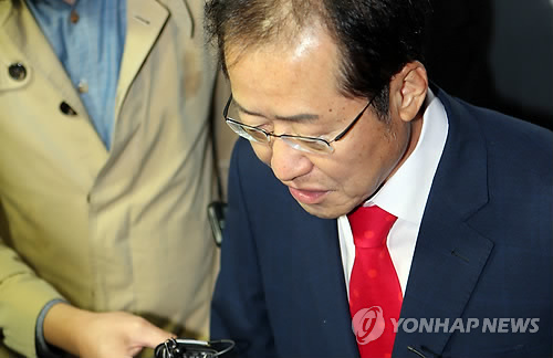 | △ 입 다물고 출근하는 홍준표 경남지사 (창원=연합뉴스) 최병길 기자 = '성완종 리스트'에 오른 홍준표 경남도지사가 1일 굳게 입을 다문 채 경남도청으로 출근하고 있다. 2015.5.1 choi21@yna.co.kr |