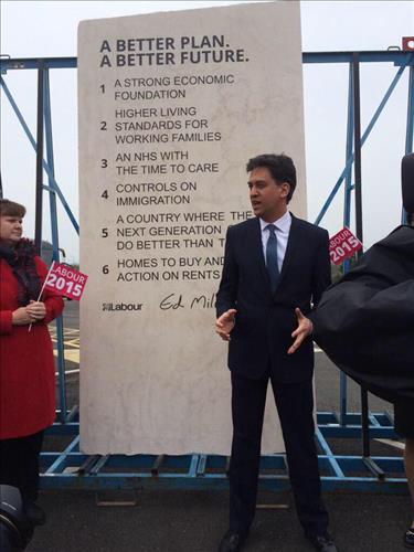 에드 밀리밴드 노동당 당수는 3일(현지시간) 노동당 공약들과 자신의 서명을 새긴 235cm 정도 높이의 석회암 비석을 공개했다고 현지 일간 인디펜던트가 전했다.