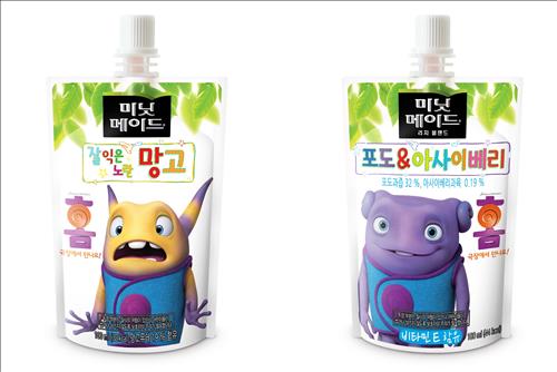 (서울=연합뉴스) 고유선 기자 = 코카콜라의 음료 브랜드 미닛메이드는 짜먹는 형태의 주스인 '애니멀 파우치'에 애니메이션 '홈(Home)'의 캐릭터 그림을 넣은 '홈 패키지' 2종을 출시한다고 4일 밝혔다.