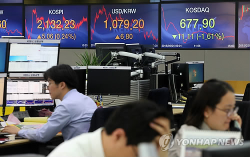 | △ 4일 거래 마감 (서울=연합뉴스) 박동주 기자 = 4일 서울 외환시장에서 원·달러 환율은 전 거래일 종가보다 6.8원 오른 달러당 1,079.2원에 거래가 끝났다. 사진은 4일 오후 서울 중구 외환은행 본점 딜링룸에서 직원들이 업무를 보는 모습. |