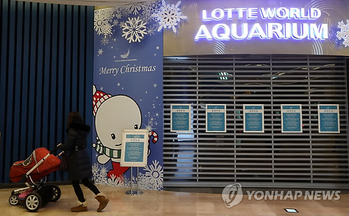 | △ 서울 잠실 제2롯데월드 아쿠아리움에 휴관 안내문이 붙어 있다. (연합뉴스 자료사진) |