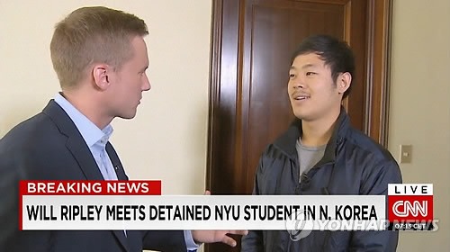 5일(현지시간) 미국 CNN방송에 따르면 뉴욕대 학생인 주 씨는 4일 이 방송과 평양 고려호텔에서 한 인터뷰에서 "불법인 것을 알지만 나의 입북을 통해 멋진 일들이 일어날 수 있다고 생각했고 이런 일들이 남북관계에 좋은 영향을 줄 것이라고 기대했다"고 말했다.