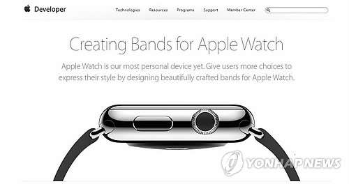 (샌프란시스코=연합뉴스) 임화섭 특파원 = 스마트시계 '애플 워치'에 끼울 수 있는 손목 밴드를 애플 외의 제3자(서드 파티)가 만드는 것을 애플이 공식적으로 인정키로 했다.