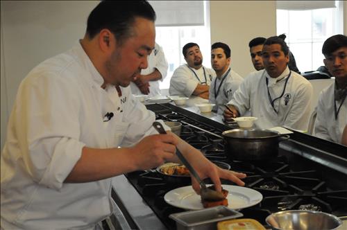 그는 이날 LA한국문화원과 르 코르동 블루가 공동 주최한 '한식은 맛있다'라는 주제의 강의에서 한국의 식재료와 음식을 미래의 요리사들에게 전수했다.