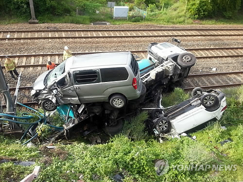 다행히 차 안에 사람이 없어 인명피해는 없었지만 차 3대가 선로 위로 떨어지면서 열차에 전력을 공급하는 고압전기선을 끊고 전주를 파손시켰다.
